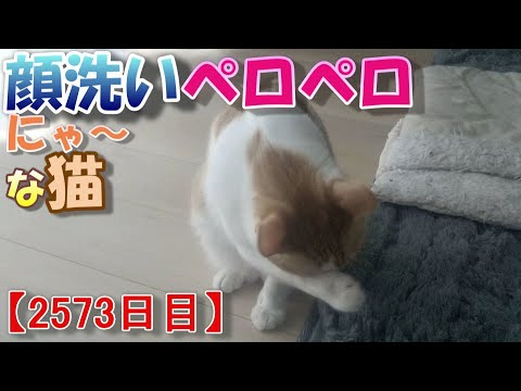 2573日目です。朝ご飯後に顔洗いしています。