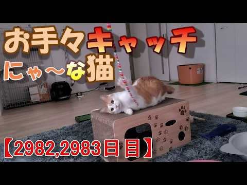 2982,2983日目です。ニケがひもじゃらしで遊んでます。